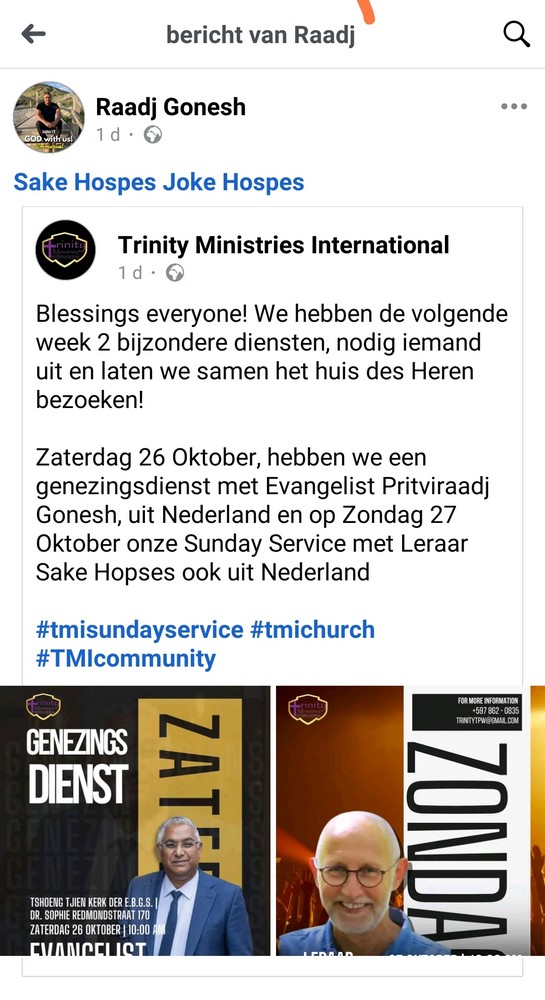 Dit is het dagboek van de zendingsreis naar Suriname 2024. Ik wens je veel kijk- en lees plezier. De eerste aankondiging van mijn spreken kwam al toen ik nog thuis was. Zondag 27 oktober was ik er.